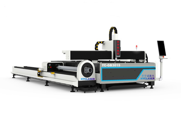YC-GB3015板管一體激光切割機又名板管兩用光纖激光切割機既能切割板材,又能切割管材型材(包括方管、圓管、槽鋼、角鋼等),而且碳鋼、不銹鋼都能切割。一機多用,性價比較高。床身采用鑄鐵床,齒輪齒條傳動系統,專業切管數控系統,精度高,功能全,使用方便,操作簡單。板管兩用光纖激光切割機適合綜合型加工制造企業。